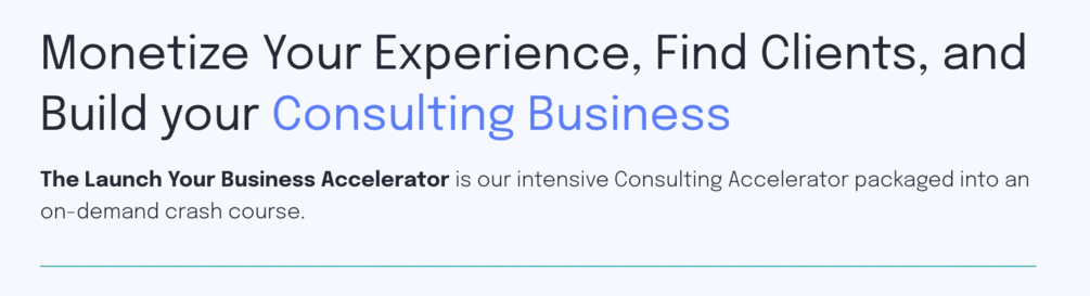 Work for yourself with the ultimate flexibility. You'll get the Comprehensive Launch your Consulting Business Starter Kit to find your first few clients and grow your business. No more trial and error - get the business you've been wanting.